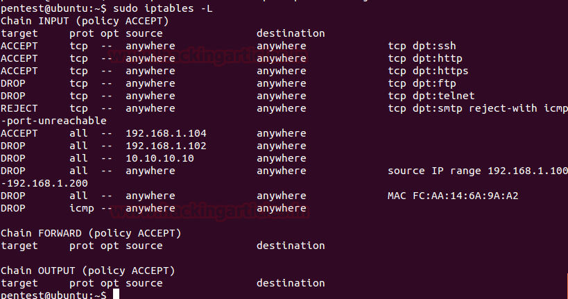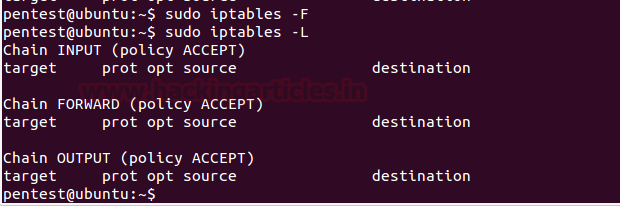 In order to view our applied chain rules once again, we are going to execute given below command which will dump the list of Iptable rules.