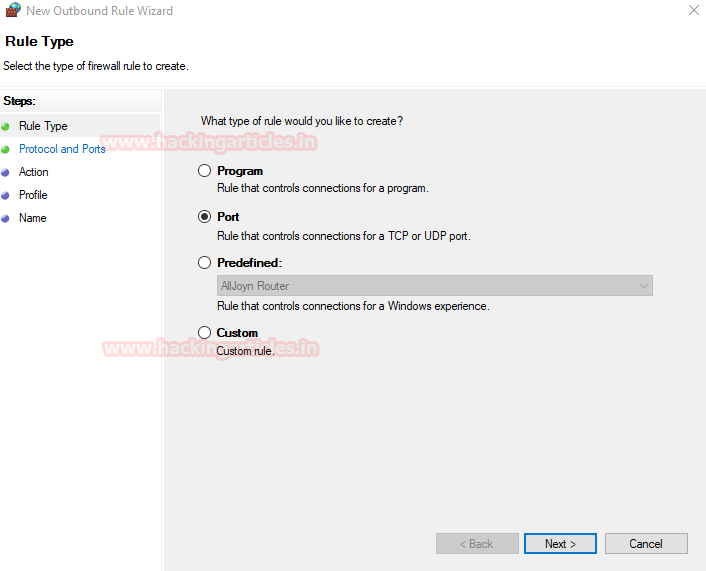 Now we select ‘Block the connection’ to block all the outgoing traffic packets from these ports.