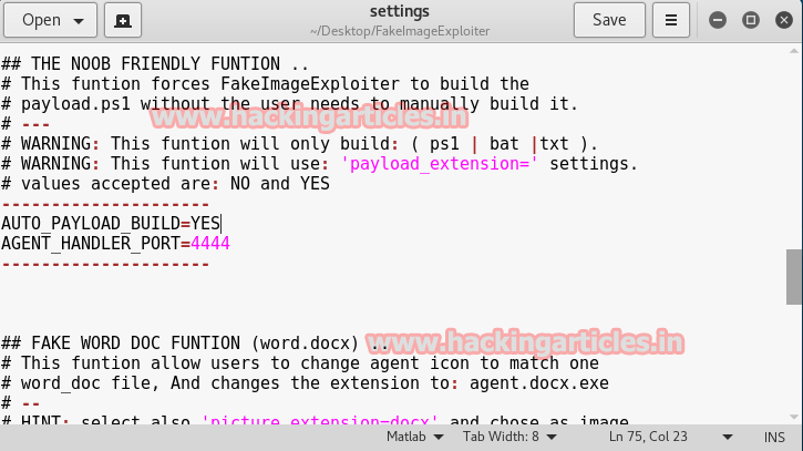 Here you have to declare the type of payload extension you will use to hide it inside the image. You can set any extension among these four: ps1, bat, txt, exe. I had set PAYLOAD_EXETNSION=bat similarly set BYPASS_RH=NO and scroll down for next configuration.