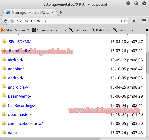Now on your computer open browse and type IP- 192.168.1.4:8888 and press Enter. Now you will get access to all directories, files & folders which Victim has in his/her phone.