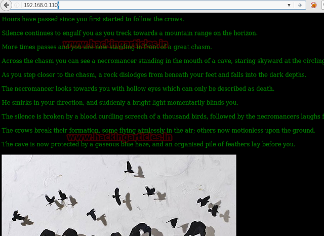 Another hint. Numeral 80 reminds us ofport 80 used for http. Let’s fire up the victim machine’s IP to our browser on port 80.