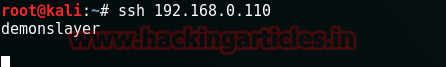 We try to login to port 22 assuming “demonslayer” to be the password but fail.