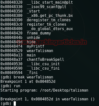 Create a break point at wearTalisman because after all we want to wear the talisman.