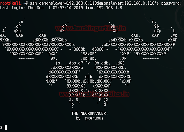 So, we login to ssh via terminal on host using demonslayer/12345678