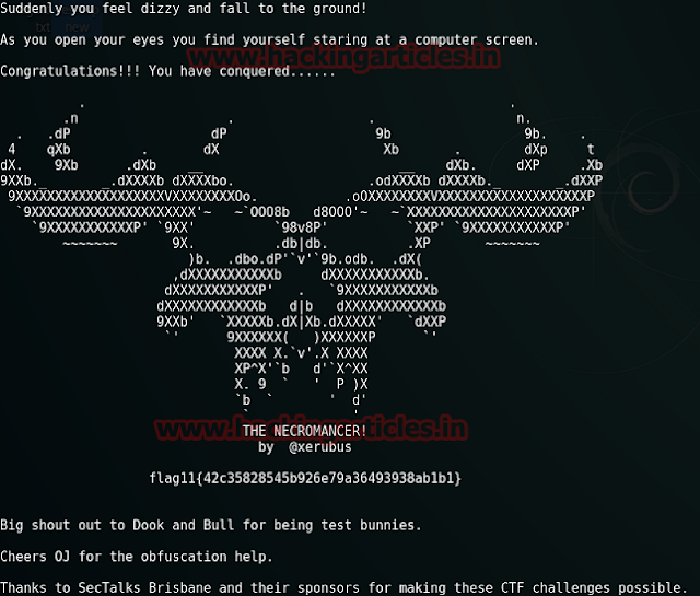 Seems to be working. It shows us the location of our 11th flag and that the flag11.txt file is not protected by any sort of password. Let’s try to open it.