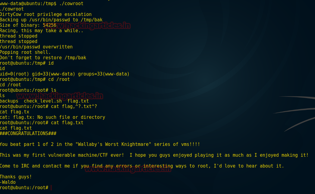 Now we can run our exploit to achieve root permission and try to capture the flag