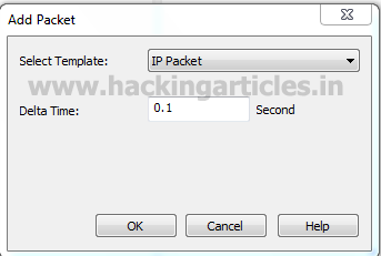 Again repeat the same process to choose IP packet for crafting Packet for IPv4 protocol on the target’s network. Again if you will notice given below image again then you will observe that I had set same delta time 0.1 sec.