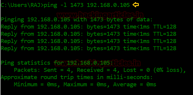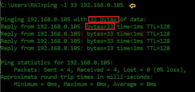 As we discussed above, the default size of the ICMP payload is 32 bytes and the maximum is 1472; if the size of the payload packet exceeds 1472, the system fragments the packet into smaller packets.