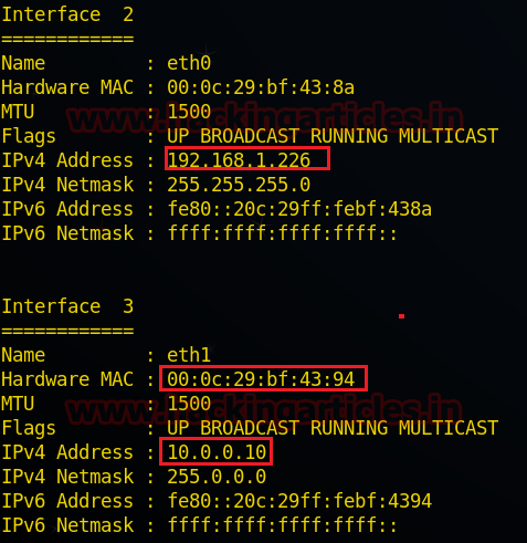 From the given image you can observe two networks interface in pivot’s system 1st for IP 192.168.1.226 through which the attacker is connected and 2nd for IP 10.0.0.10 through which VNC server (targets) are connected.