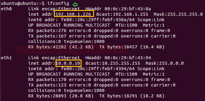 Given the image below is describing the network configuration for server machine (SSH) where it is showing two IP 192.168.1.226 and another 10.0.0.10 as explain above.