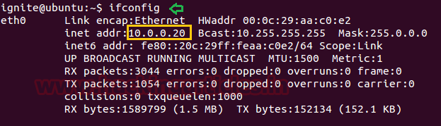 Another image given below is describing network configuration for a local machine which is showing IP 10.0.0.20
