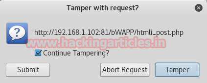 When the request will send through the browser to the web server a pop up will appear, now hit Tamper, which will start capturing the sending request.