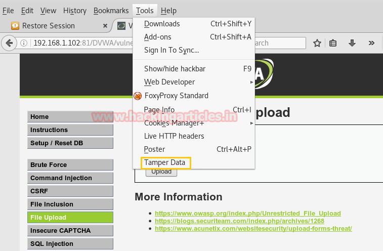 File upload using tamper data