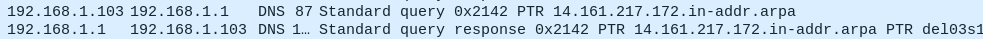 - The router sent the response to the source as the answer of DNS Name del03s10-in-f14.1e100.net