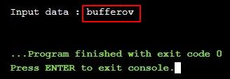 After Compilation, the program gets executed. Upon the first execution, we supplied “bufferov” as input data.
