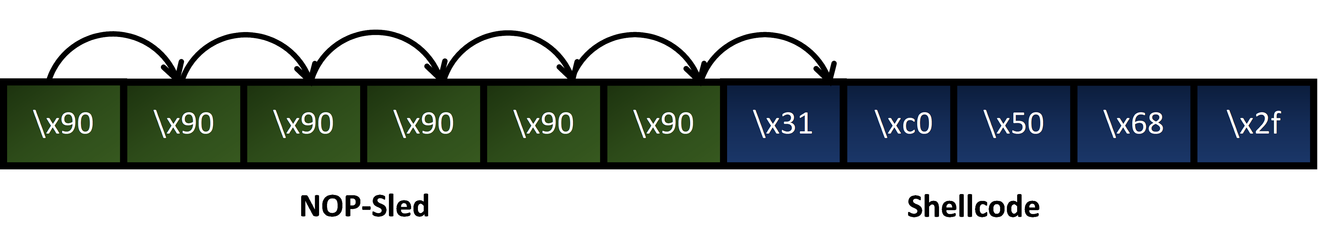 A NOP-sled is a sequence of no-operation instructions which is responsible for sliding the CPU’s execution flow to the next memory address. If we have prepended nops before our shellcode then it doesn’t matter where the buffer is located. When the return pointer hits the NOP-sled then as the name suggests it is going to slide the return address until it reaches the beginning of our shellcode.