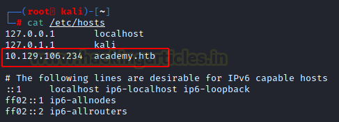 nano /etc/hosts 10.129.106.234 academy.htb