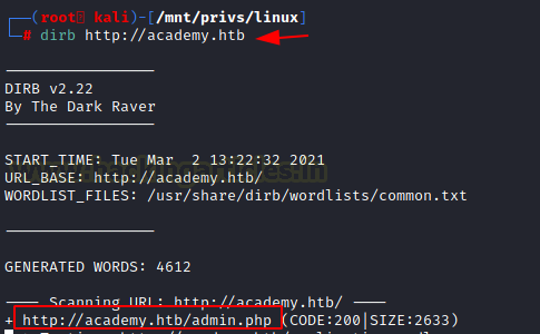 dirb http://academy.htb http://academy.htb/admin.php
