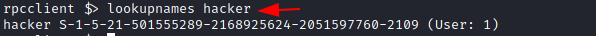You can also check whether the user you created has been assigned a SID using the lookupnames command on rpcclient. While lsaenumsid extracts SIDs, it cannot identify the corresponding user. You solve this problem with lookupnames, which extracts the SID for a specific user when you provide the username, making the process straightforward.