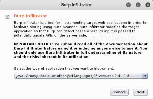 Burp Infiltrator is a tool used to target web applications in order to test them using Burp Scanner. Burp Infiltrator is used to targeting application so that Burp can detect cases where its input can pass unsafe APIs on the server-side.