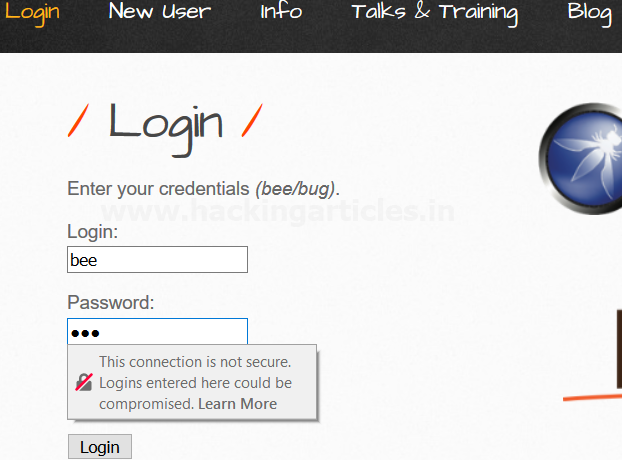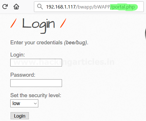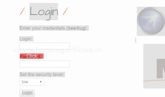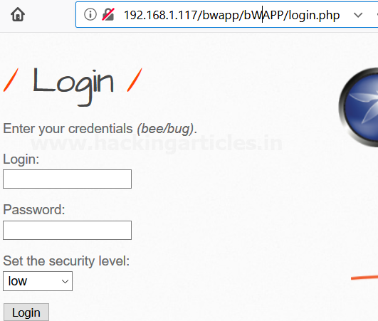 As you can see in the image we are on the login page of the Bwapp Lab where we have not given any login details.