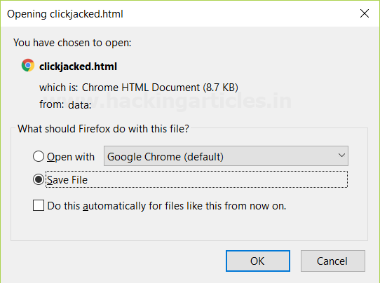 Click on Save Button, allows you to save an html file containing the attack. This can be used as a real-world exploit as clickjacking vulnerability.