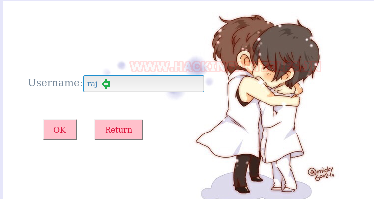 Back to the part, where we initially browsed the webpage, we found a signup option. We clicked that option. This gave us a form with the username option as shown in the image. So, we created a user account with the name “raj”.