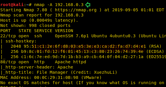 We learned from the scan that we have the port 80 open which is hosting Apache httpd service. And we have the port 22 open which gives us the option to remotely connect to the target machine.