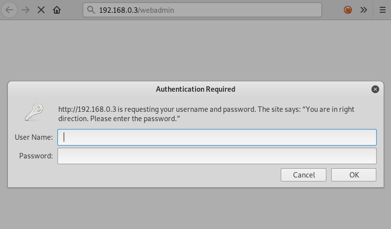 Upon finding the webadmin directory, we opened the URL in our browser. This gave us a Login Prompt. We don’t have any login credentials to proceed further here.