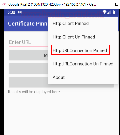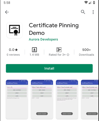 Step 9: Now that everything is set up, we’ll need an application to test SSL Pinning. There is an application in playstore by the name “Certificate Pinning Demo.” This app would help us demonstrate SSL pinning bypass using objection. So, install this on the device.
