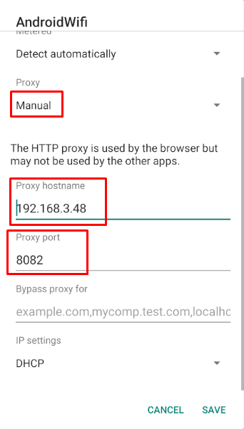 Step 4: Change proxy to manual and add the hostname as your IP on which burp is being run. Also, change your port to 8082 and click save.