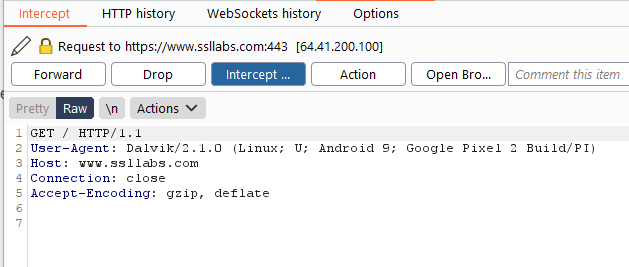 Hence, there is a problem for an attacker now as even if there is a self-generated cert installed on the client device, the communication is still not being intercepted due to the developer embedded certificate pinning code that is within the application. These are generally an x509 cert or a public key.