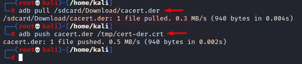 adb pull /sdcard/Download/cacert.der adb push cacert.der /tmp/cert-der.crt