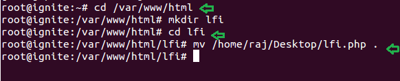Move the lfi.php file from desktop to /var/www/html using given below command.