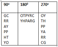 In the rotation, cipher generates ciphertext on the behalf of block size and angle of rotation of plain text in the direction of following angles: 90o 1800 270o