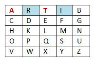 S1: Set the 5 × 5 matrices by filling the first positions with the key. Fill the rest of the matrix with other letters. Let assume “ARTI” is our key for encryption.
