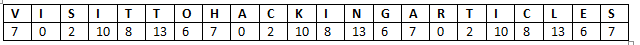 For example, the plaintext is “VISIT TO HACKING ARTICLES” and the key is “HACKING: 7 0 2 10 8 13 6”