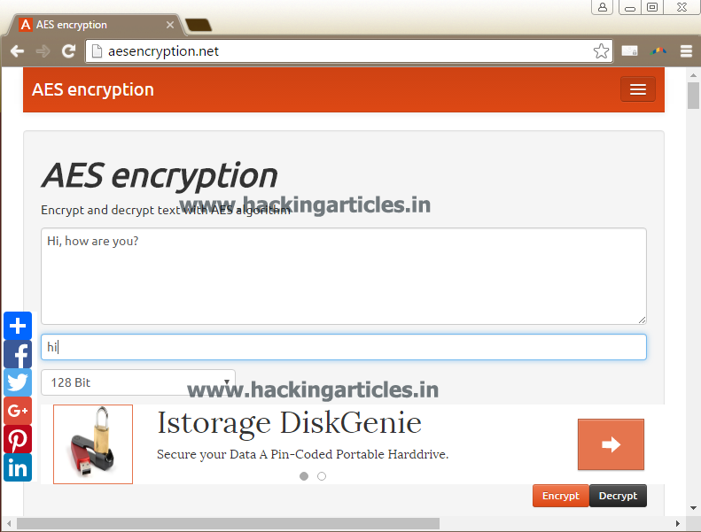 The said person, after receiving your encrypted message, can come on this website to decrypt it. He/She will simply have to copy the encrypted text and paste it on the first box and enter the key in the next box and click on the decrypt button on the right side as shown below :
