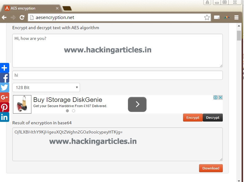 For Symmetric encryption we can simply visit the website: www.aesencryption.net, shown below :