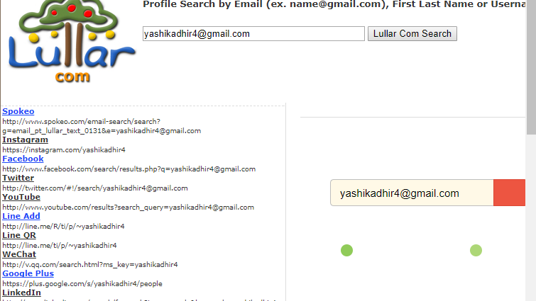 Now open lullar.com, here you can search for people using their email and much more. Here, I have searched through email (using my own email) and there is a positive result in the image below.