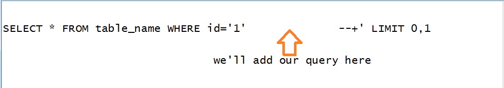 SELECT * FROM table_name WHERE username=’Raj’ this much query because everything after –+ will be commented and will not be interpreted as part of the query.