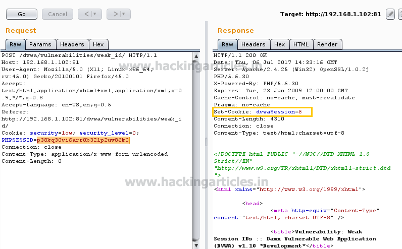 From the given image you can observe we have replaced the SESSION ID and then generate its response in which set-cookie: dvwaSession =6 and HTTP 200 OK response from server-side.