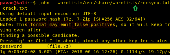 Now John cannot directly crack this key, first, we will change its format, which can be done using a john utility called “7z2john”. This is not inbuilt utility, It can be downloaded from here.