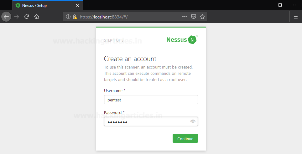 Download Nessus for windows from Nessus Official Website. And open it similarly in the browser to set it up.