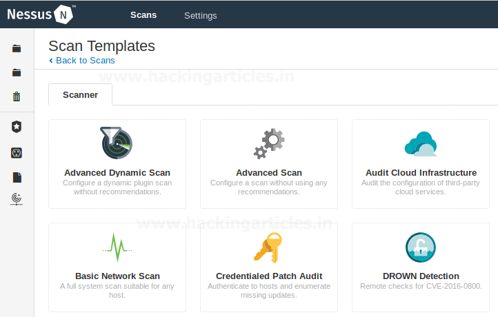 When you click on create new scans, there will be multiple scans that you can see in the following image :