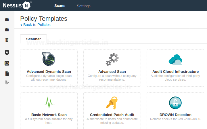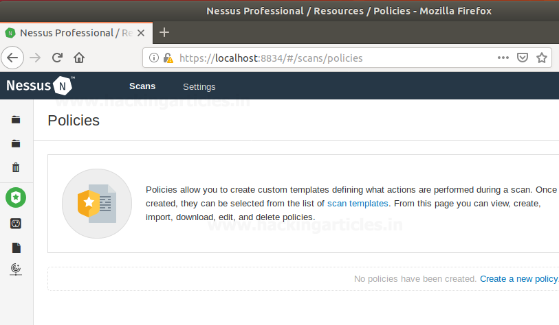 And then in the policies tab, you can generate different policies on which the scans are based.