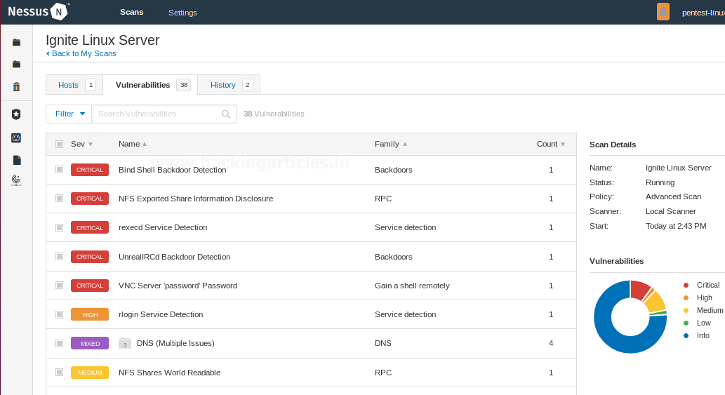 Nessus is a network vulnerability scanner that utilizes the Common Vulnerabilities and Exposures engineering for simple cross-connecting between agreeable security instruments. Nessus utilizes the Nessus Attack Scripting Language (NASL), a basic language that portrays singular dangers and potential assaults. Nessus has a measured design comprising of incorporated servers that direct examining, and remote customers that take into account chairman communication. Executives can incorporate NASL portrayals of every presumed powerlessness to create altered outputs. Noteworthy abilities of Nessus include: