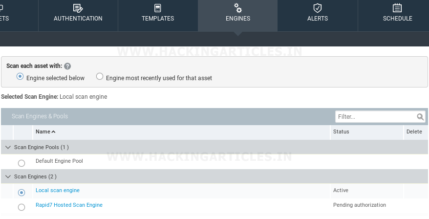- Local Scan Engine – Scan Engines are responsible for performing scan jobs on your assets.